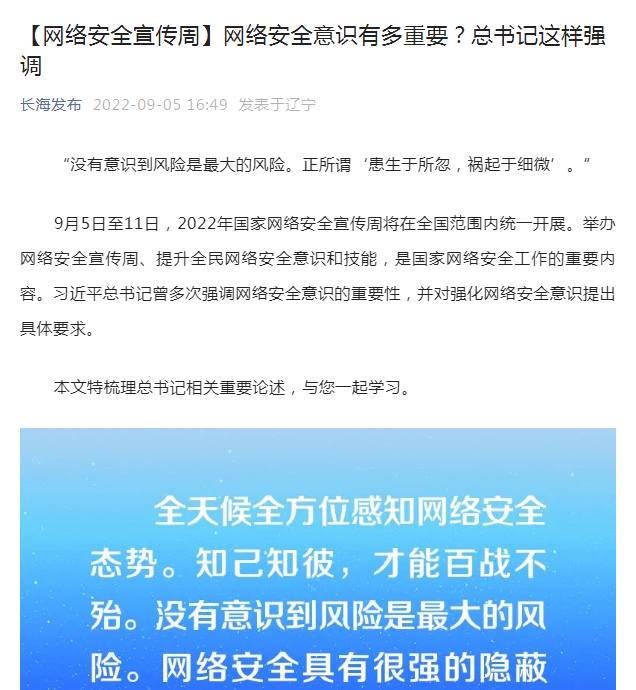 大连市长海县积极开展2022年网络安全 宣传周活动