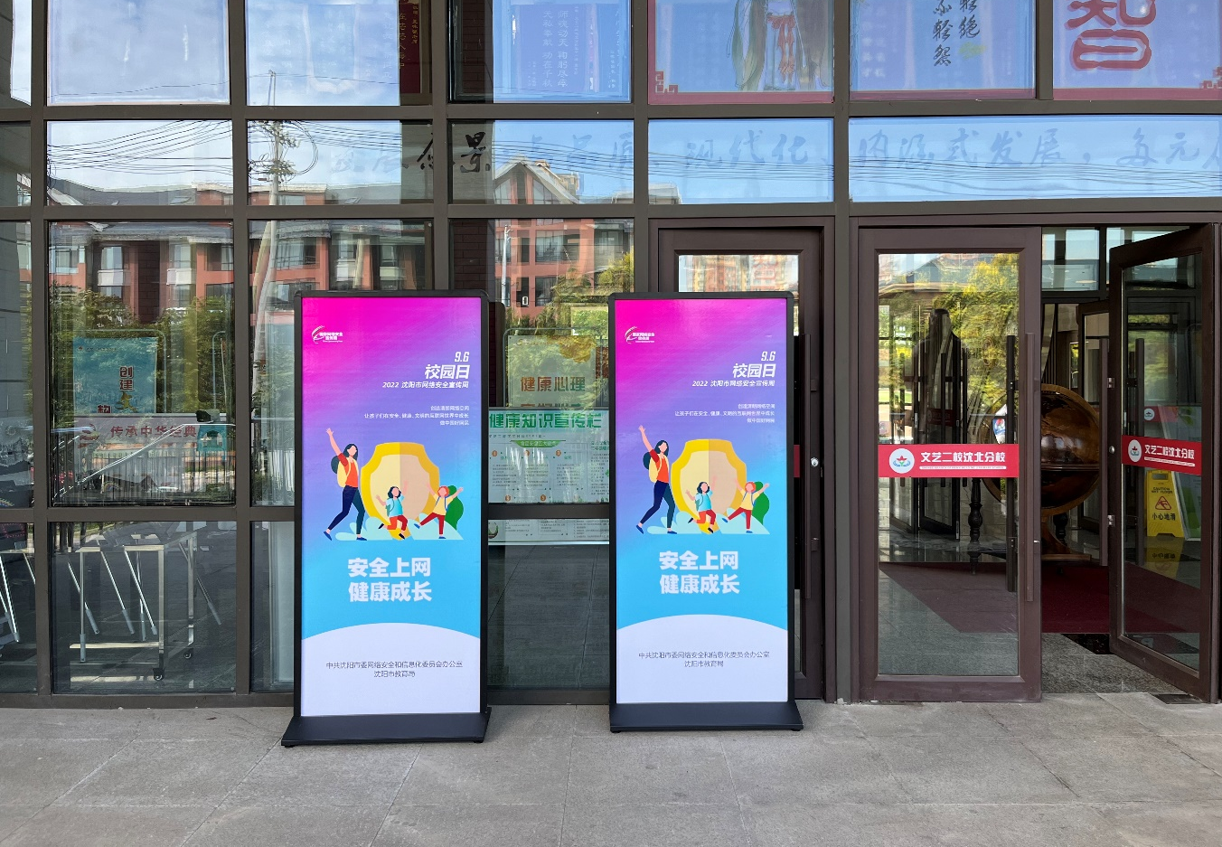 通过电子屏展示网络安全宣传校园日海报
