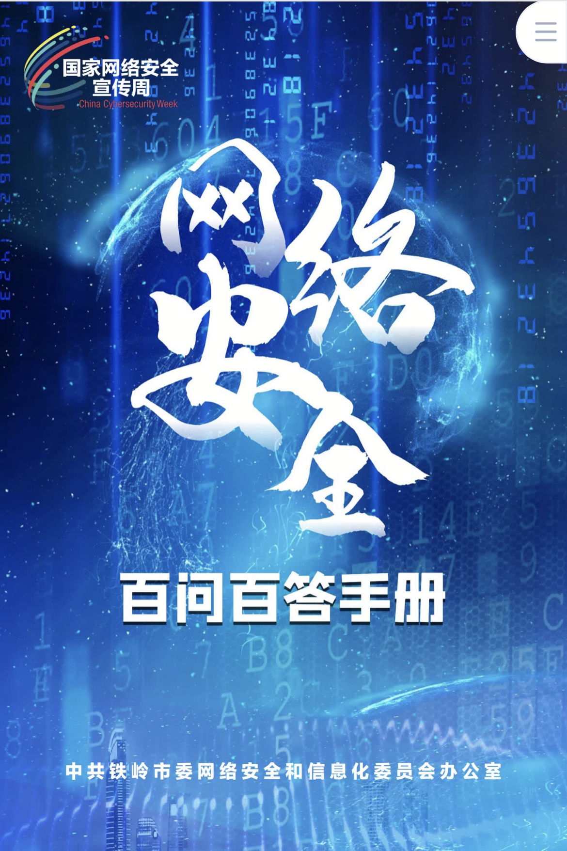 依托辽宁省网络安全宣传周网站,设计铁岭市网络安全宣传周线上展示平台,重点展示我市开展网络安全宣传周校园日、电信日、个人信息保护日等系列主题日宣传视频,集中展示市委网信办联合相关单位在网络安全宣传周期间所发布的倒计时、启动日、主题日宣传海报以及相关行业制作的宣传品。