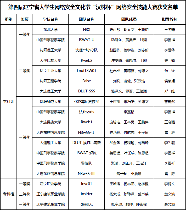 11月20日,由辽宁省网络安全保障工作联盟承办的第四届辽宁省大学生网络文化节“汉林杯”网络安全技能大赛圆满落幕。