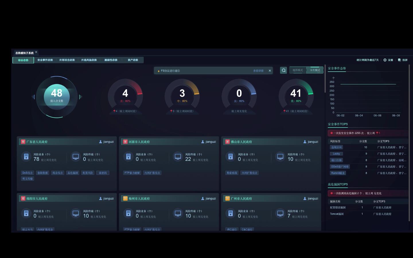 电子政务外网建设是政务信息化建设的先导工程,辽阳市主管部门按照中央和省关于网络安全和信息化发展的工作要求,结合“负责信息安全的统筹规划和协调管理,协调信息安全保障体系建设”的机构职能,以统筹协调全市各级党政机关单位全面提升基础电子政务网络、重要网站、信息系统的安全防御能力,构建辽阳市电子政务网络信息安全保障体系为总体目标,从2013年起开展电子政务网络信息安全保障体系的规划设计及建设工作,目前项目各项建设工作进展正常。