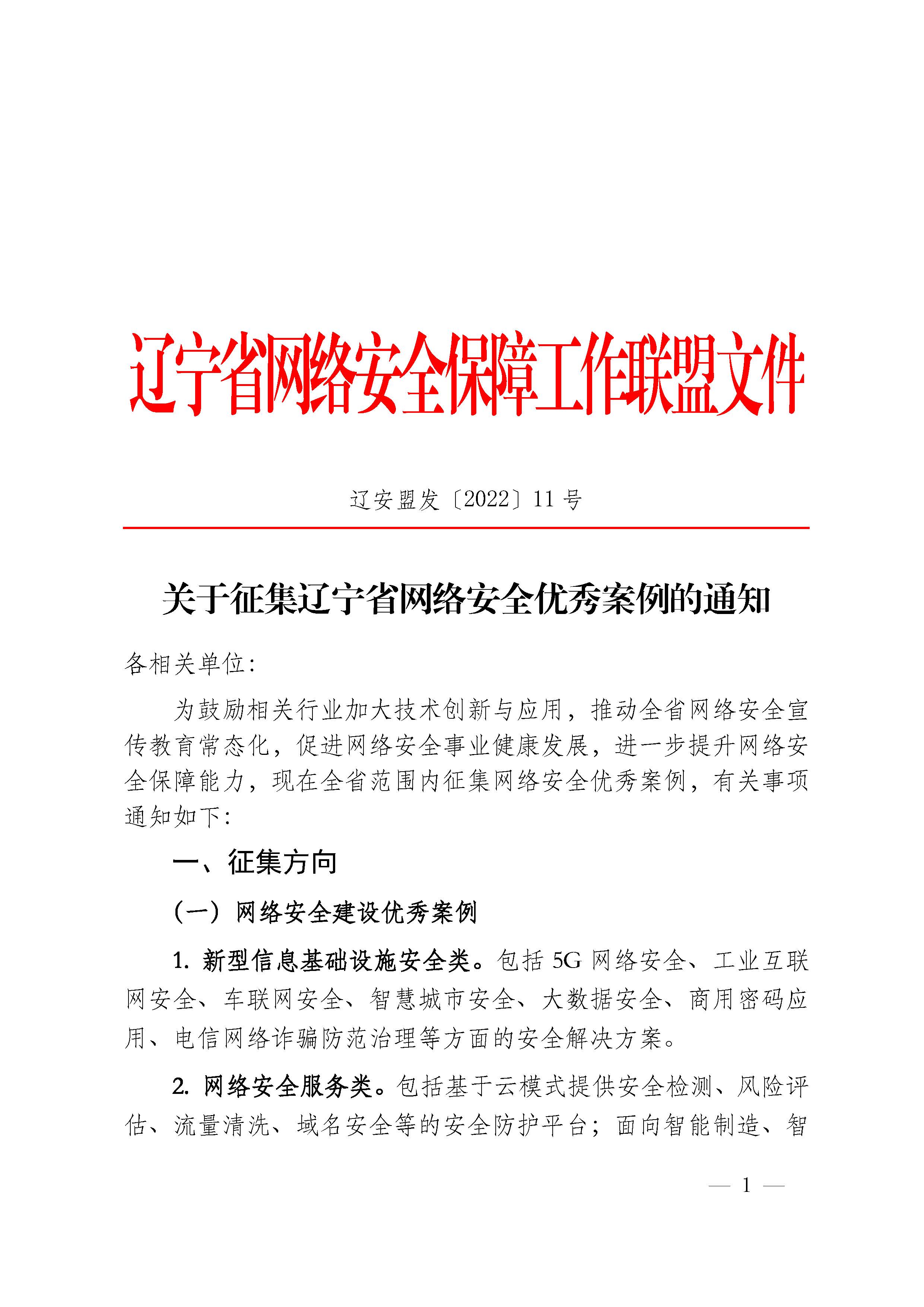 关于征集辽宁省网络安全优秀案例的通知